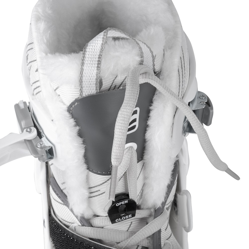 Patinele inSPORTline Bergera combina stilul, confortul si siguranta intr-un singur produs. Interiorul captusit cu blana sintetica moale mentine picioarele calde pe toata durata purtarii, astfel incat nu vei resimti frigul nici in timpul sesiunilor mai lungi de patinaj. Patinele sunt fixate printr-o combinatie de sistem rapid de sireturi, catarama si banda Velcro, asigurand o prindere sigura si stabila.