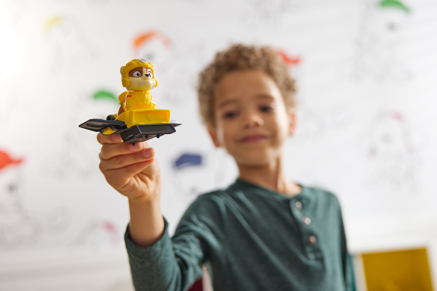 PATRULA CATELUSILOR ACTION PUPS SET VEHICUL DE SALVARE HOVERBOARD SI FIGURINA RUBBLE 5 CM SuperHeroes ToysZone
