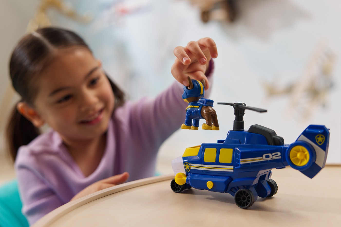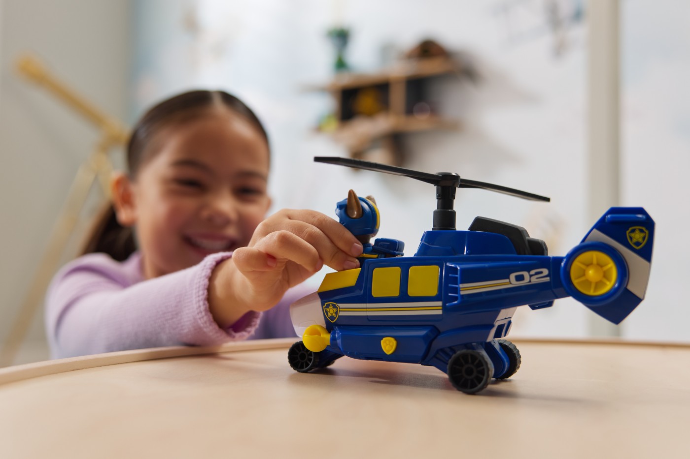 Zboara in actiune cu Air Rescue Skye si jucaria ei de salvare din incendii, avionul Hero Claw. Cand este timpul pentru o misiune de salvare plina de actiune, blocheaza picioarele lui Skye in pozitie in cabina de pilotaj inainte de a decola in misiunea ta. Salveaza-ti iepurasul de jucarie apasand un buton de pe avion pentru a extinde gheara, apoi prinde iepurasul cu cosul de salvare si du-l in siguranta. Skye are o inaltime de peste 5 cm si este echipata cu jacheta si casca de zbor de culoare roz Air Rescue. Pentru si mai multe moduri de joaca interesante, cauta-l pe Chase in elicopterul sau de jucarie Hero Helicopter si pe Marshall cu avionul sau de jucarie Hero Hydro Plane, pentru a crea echipa de salvare perfecta. Jucariile pentru prescolari inspirate din Patrula catelusilor si jucariile de invatare pentru copii mici sunt cadouri pentru copiii si fanii serialului, incurajand jocul plin de imaginatie si imbunatatirea abilitatilor motorii fine. Retraieste momentele tale preferate din sezoanele Patrula catelusilor, cum ar fi Mighty Pups si filmul Patrula catelusilor, apoi creeaza-ti propriile aventuri cu cateii din Patrula catelusilor si masinutele lor (vandute separat). Creste-ti entuziasmul cu seturile complete ale echipei Action Pups si Air Rescue, care includ vehicule din Patrula catelusilor, personaje de actiune si jucarii pentru copiii mici, pentru ore nesfarsite de aventuri fantastice cu catelusi, inspirate din serial.