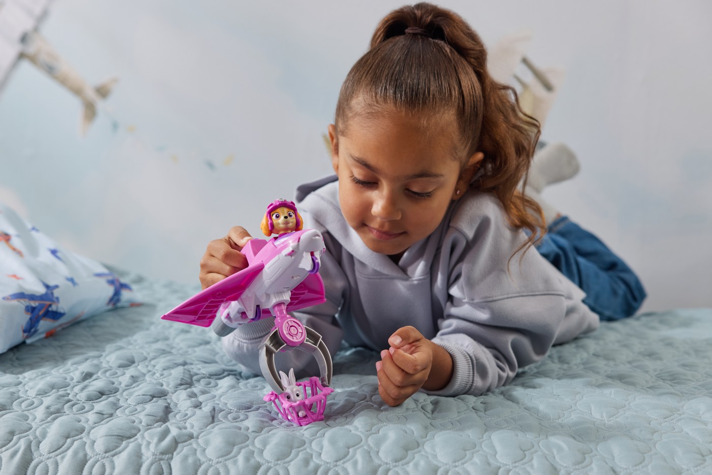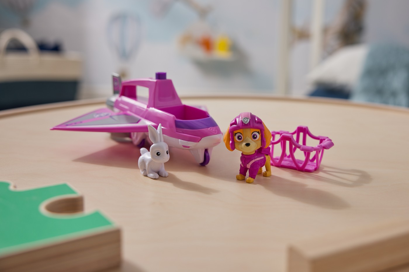 Zboara in actiune cu Air Rescue Skye si jucaria ei de salvare din incendii, avionul Hero Claw. Cand este timpul pentru o misiune de salvare plina de actiune, blocheaza picioarele lui Skye in pozitie in cabina de pilotaj inainte de a decola in misiunea ta. Salveaza-ti iepurasul de jucarie apasand un buton de pe avion pentru a extinde gheara, apoi prinde iepurasul cu cosul de salvare si du-l in siguranta. Skye are o inaltime de peste 5 cm si este echipata cu jacheta si casca de zbor de culoare roz Air Rescue. Pentru si mai multe moduri de joaca interesante, cauta-l pe Chase in elicopterul sau de jucarie Hero Helicopter si pe Marshall cu avionul sau de jucarie Hero Hydro Plane, pentru a crea echipa de salvare perfecta. Jucariile pentru prescolari inspirate din Patrula catelusilor si jucariile de invatare pentru copii mici sunt cadouri pentru copiii si fanii serialului, incurajand jocul plin de imaginatie si imbunatatirea abilitatilor motorii fine. Retraieste momentele tale preferate din sezoanele Patrula catelusilor, cum ar fi Mighty Pups si filmul Patrula catelusilor, apoi creeaza-ti propriile aventuri cu cateii din Patrula catelusilor si masinutele lor (vandute separat). Creste-ti entuziasmul cu seturile complete ale echipei Action Pups si Air Rescue, care includ vehicule din Patrula catelusilor, personaje de actiune si jucarii pentru copiii mici, pentru ore nesfarsite de aventuri fantastice cu catelusi, inspirate din serial.