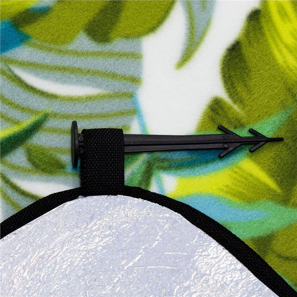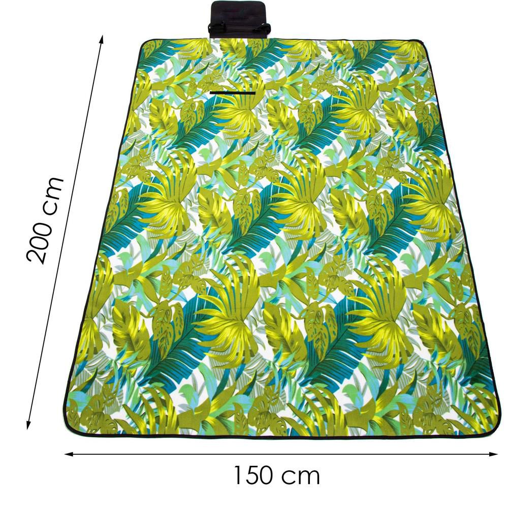 Dimensiune: 150x200 cm Material: fleece+aluminiu Culoare: nuante de verde Culoare ornament: negru Model: frunze Greutate: 220 g/m2 Grosime: 2 mm Buzunar cu fermoar: da Maner de transport: da (reglabil, pe umar sau in mana) Poate fi atasata la sol: da Ancore incluse: da (4 bucati) Aceasta patura este cu siguranta o alegere buna pentru cei carora le place sa petreaca timp in aer liber. Perfect pentru un picnic cu familia, pe plaja in timp ce stai intins sau camping pentru a te odihni pe un material impermeabil. Ansamblul este realizat din materiale de cea mai buna calitate, iar datorita folosirii stratului inferior de folie se asigura confortul izolatiei impotriva solului rece. CELE MAI IMPORTANTE AVANTAJE: Dimensiunea totala este ideala pentru excursii cu familia Ocupa putin spatiu cand este pliat Inchidere cu velcro Fond impermeabil, izolator impotriva suprafetelor reci Material rezistent la murdarie si usor de curatat Stratul superior este realizat din fleece rezistent la murdarie. Este si usor de curatat, ceea ce este perfect pentru a petrece timp in aer liber, atat cu cei mai mici membri ai familiei, cat si in timpul unei intalniri in doi. Patura de picnic are trei straturi: fleece moale, umplutura cu spuma si folie izolatoare. Drept urmare, este atat izolata de pamantul rece, cat si impermeabila. Functioneaza bine pe orice suprafata: nisip, pamant, iarba sau pietris. Patura se pliaza in dimensiunea mica a unei genti cu velcro. In plus, are un maner care va va permite sa o transportati usor de la masina la plaja sau din casa in gradina pentru a va bucura de vremea frumoasa pe o suprafata confortabila. Puteti plia patura in trei pasi: Intoarceti patura cu izolatia in sus Indoiti partile laterale (perpendicular pe marginea cu clapeta) in conformitate cu pliurile catre clapeta, astfel incat aceasta sa fie pe pamant Cand patura are o latime, incepeti sa o pliati intr-un cub mic spre rever Fixati scaiul