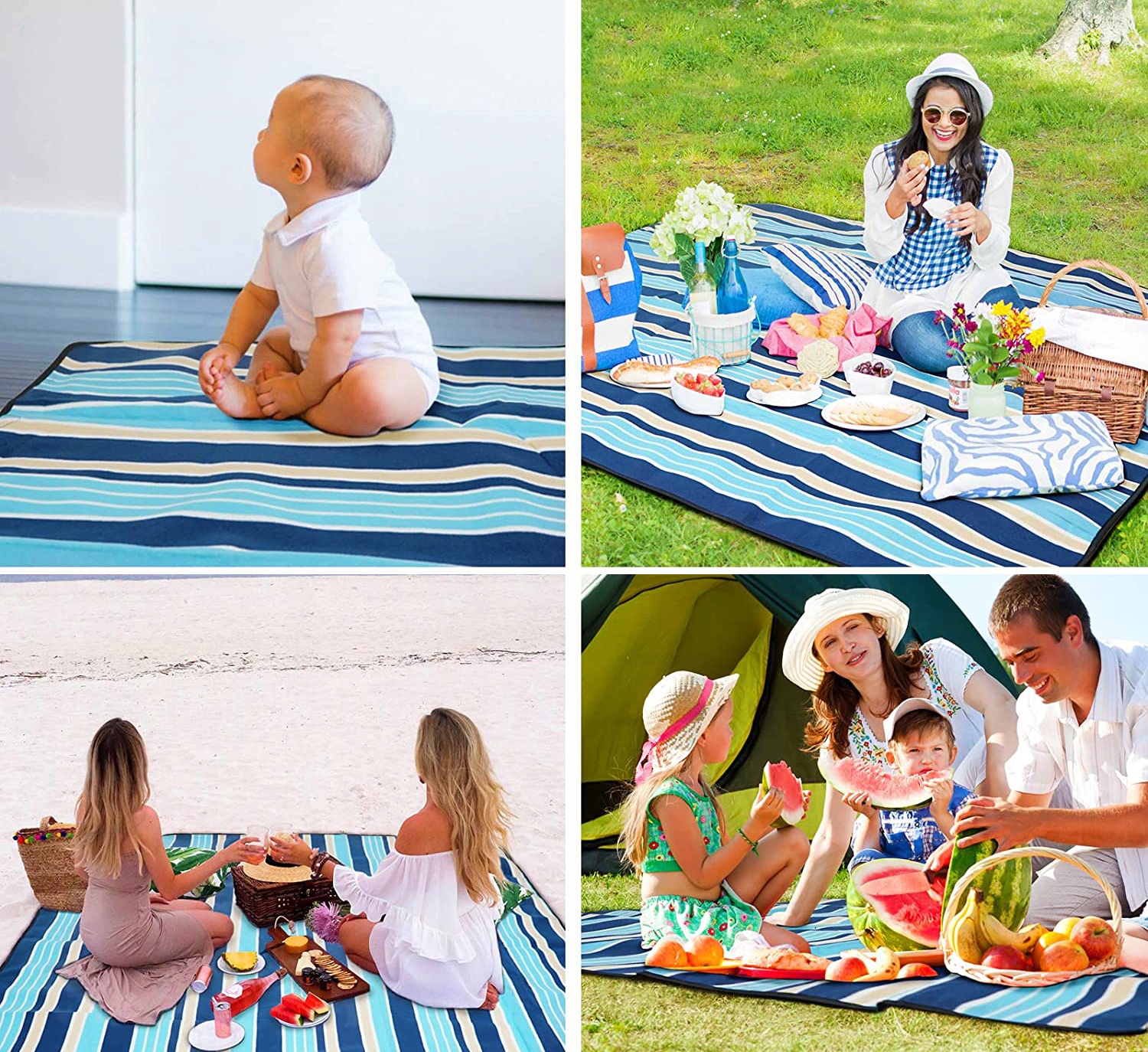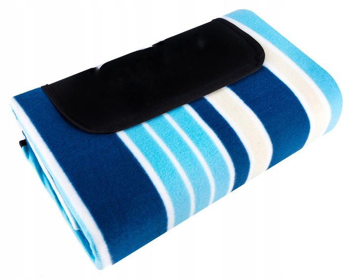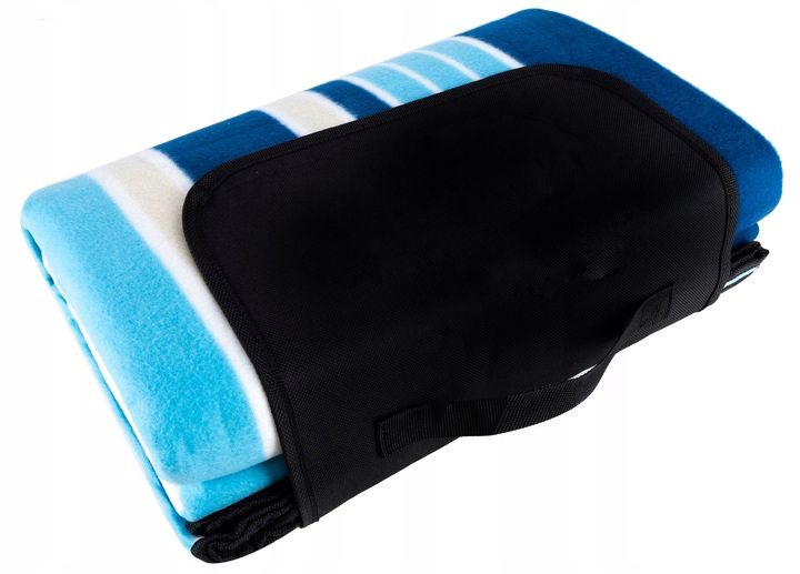 Patura pentru picnic sau plaja, cu folie izolatoare si maner, 200x200cm, alb albastru Household NewTrend