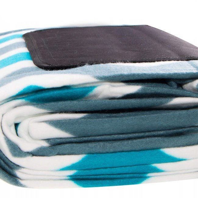 Pătură pentru picnic și plajă cu strat izolator și mâner, 160x200 cm, alb-albastru