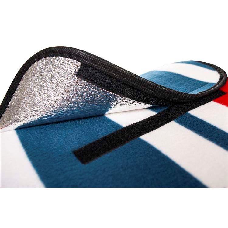 Paturile sunt realizate din material de cea mai buna calitate, poliester pe o parte si aluminiu pe cealalta. Drept urmare, sunt extrem de durabile, impermeabile si usor de curatat. Velcro integrat permite plierea paturii si este usor de transportat cu manerul.