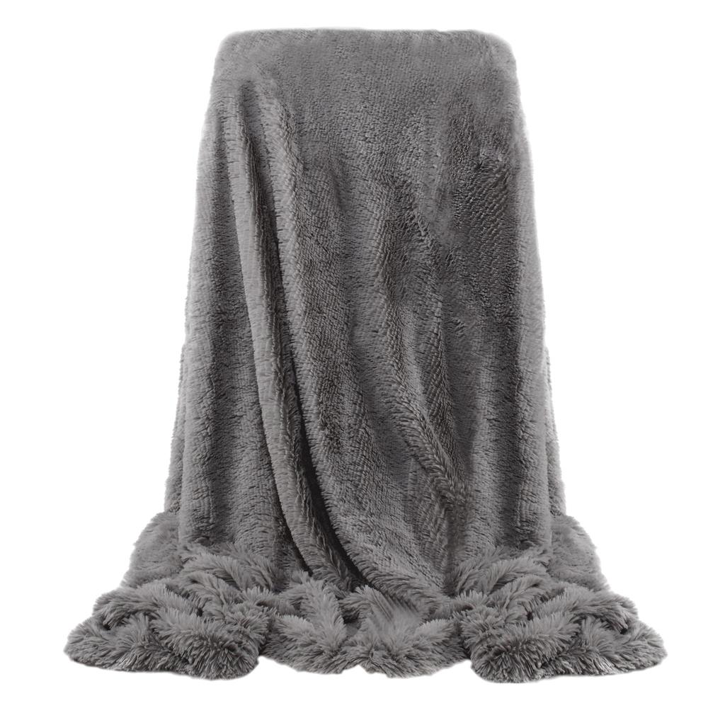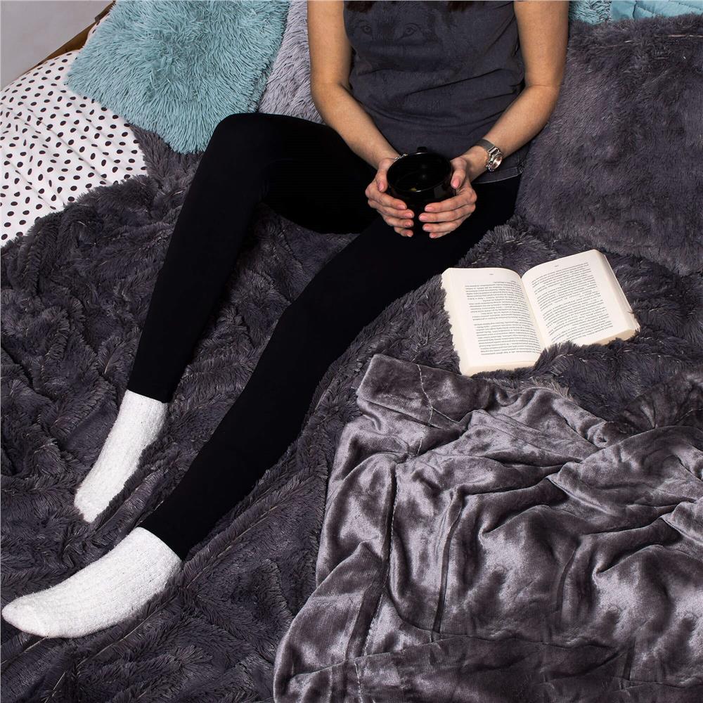 Patura pufoasa dubla fata pentru 2 persoane, 200x240 cm, gri grafit