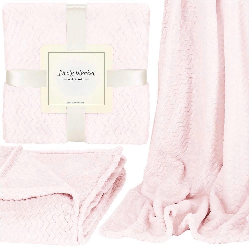 Patura pufoasa pentru 2 persoane, 2 fete, model in relief, 200x220cm, roz pal Household NewTrend