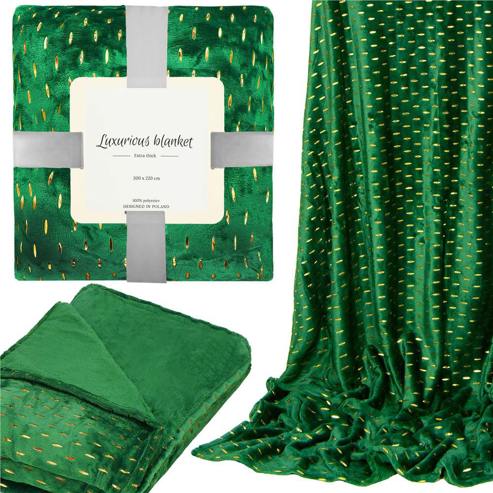 Patura pufoasa pentru 2 persoane, 2 fete, model in relief, 200x220cm, verde Household NewTrend