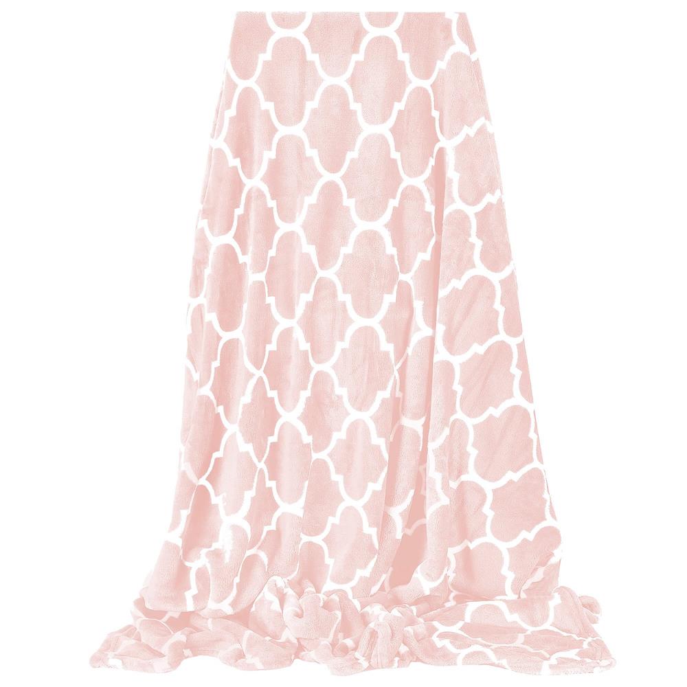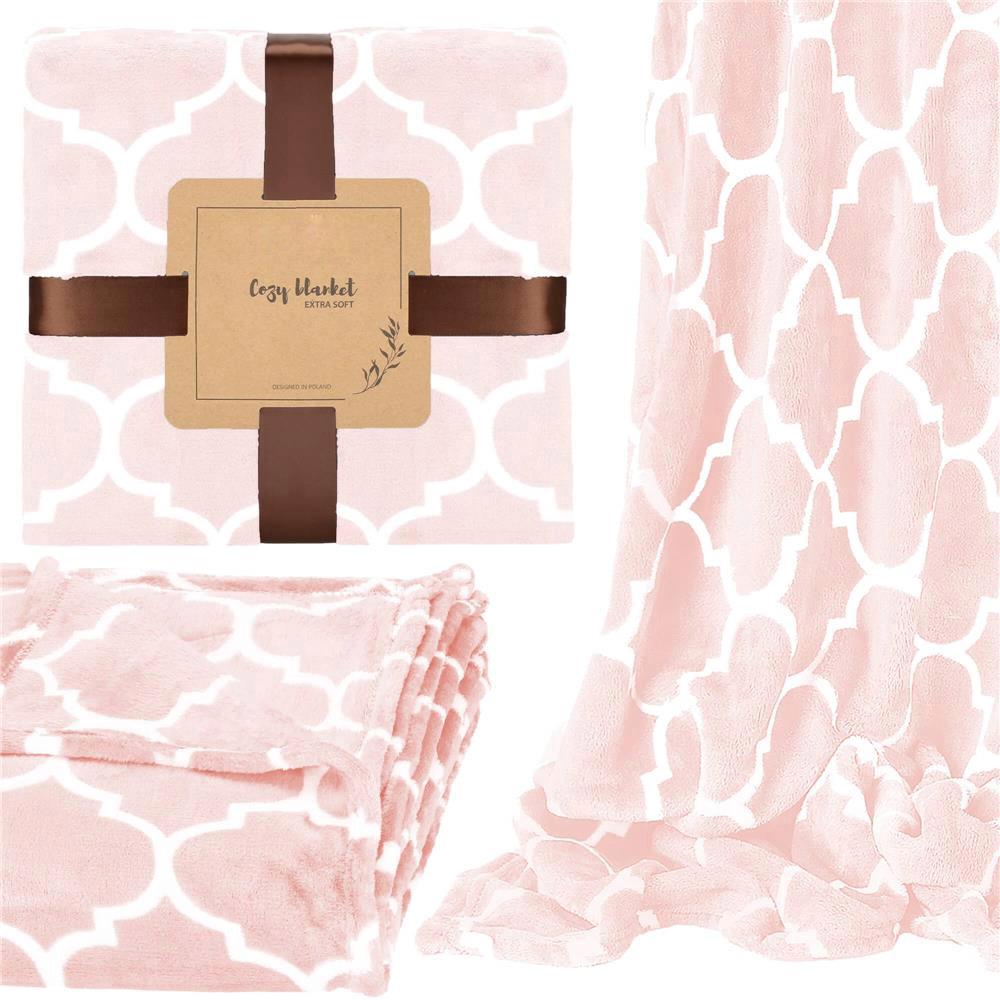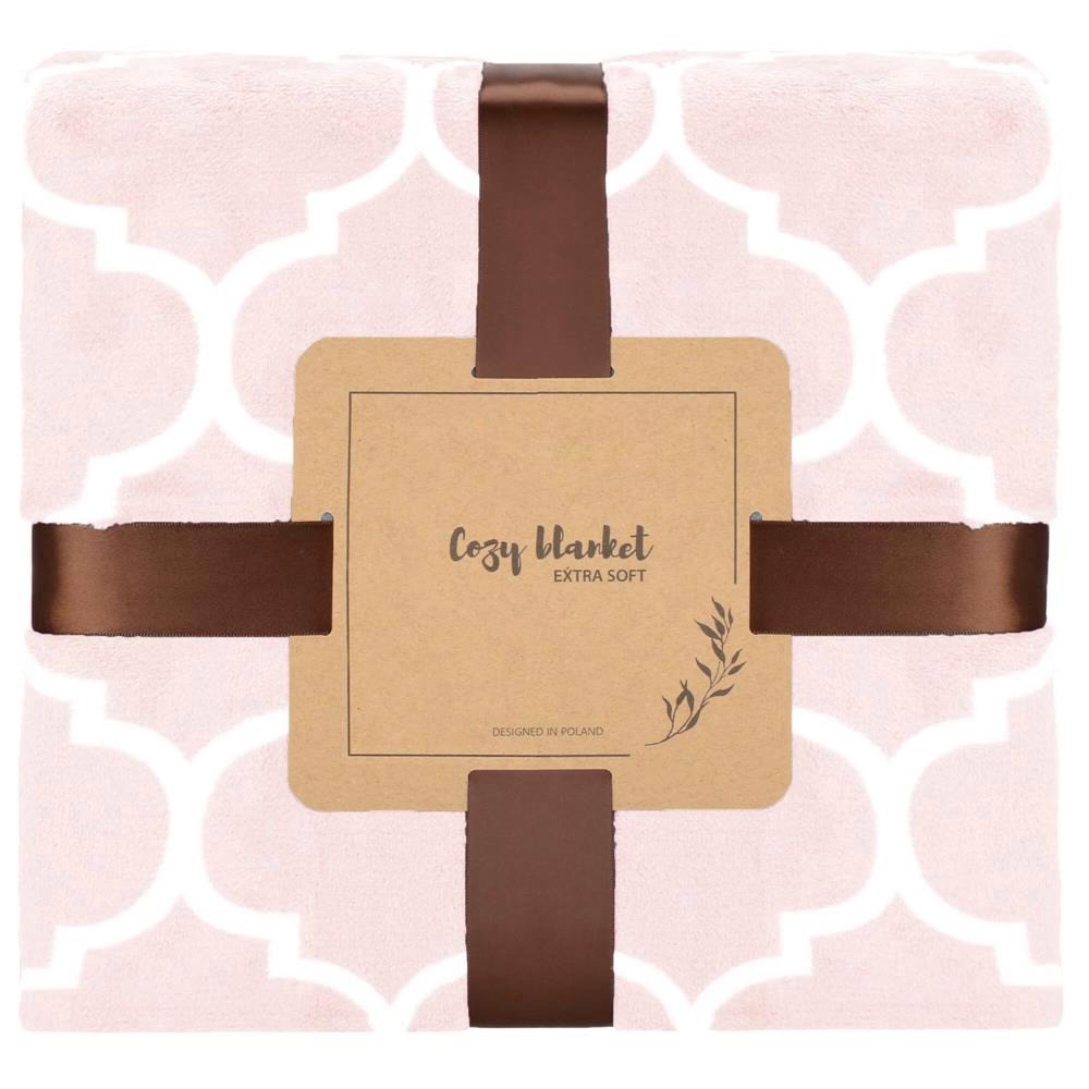 Pătură pufoasă pentru 2 persoane, 200x220 cm, model trifoi marocan, roz