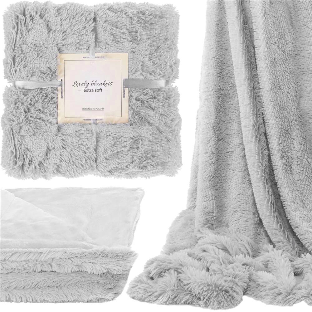 Patura pufoasa si calduroasa pentru 2 persoane, 160x200cm, gri deschis Household NewTrend