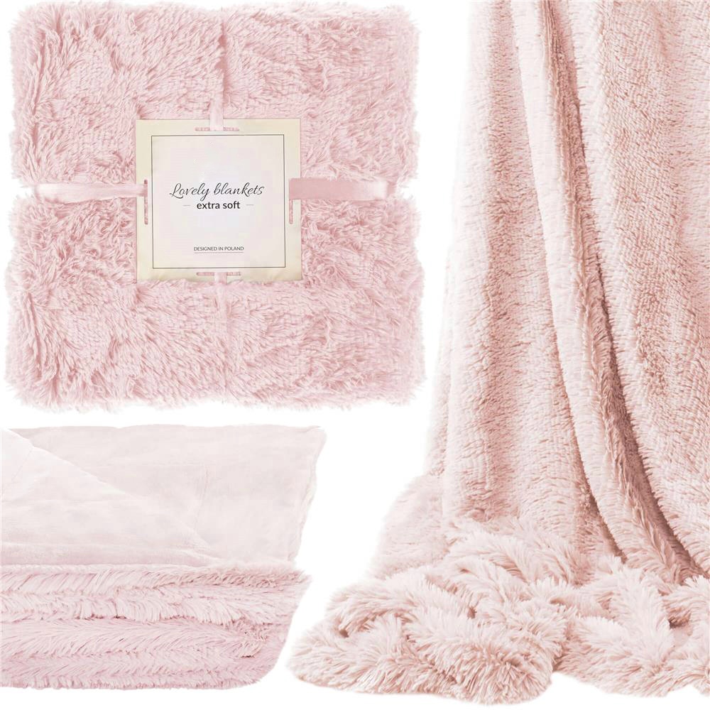 Patura pufoasa si calduroasa pentru 2 persoane, 220x240cm, roz Household NewTrend