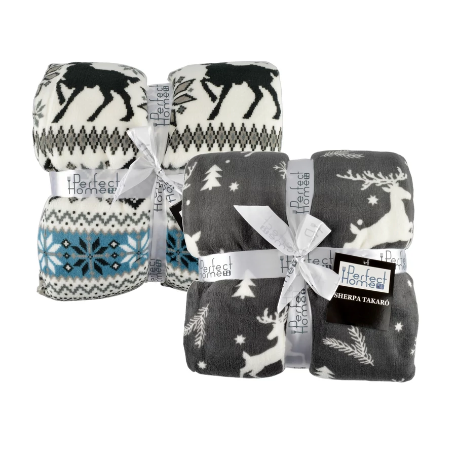 Pătură Sherpa de Crăciun 150x200 cm, moale, cu două fețe (pluș și Sherpa)