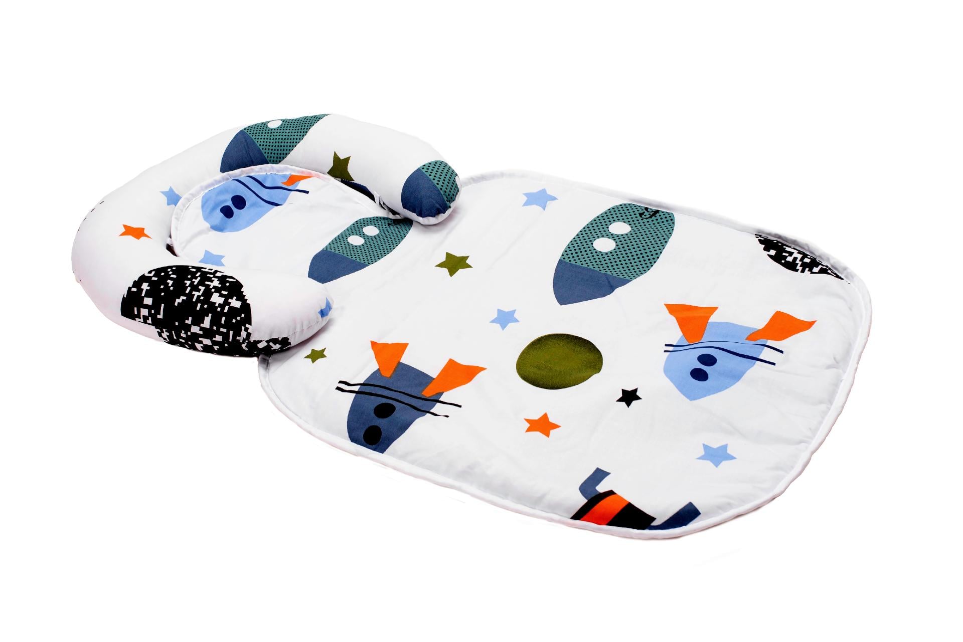 Păturică impermeabilă pentru bebeluși cu tetieră detașabilă, model rachete