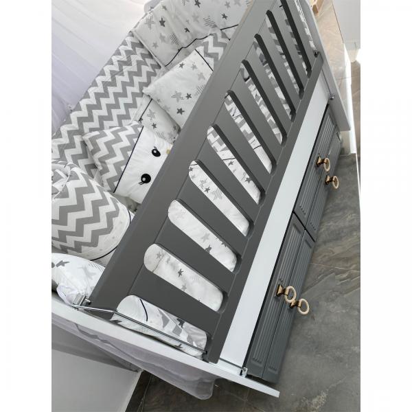 Pătuț bebe MyKids Olivia alb gri 130x70 cu legănare și laterală culisabilă