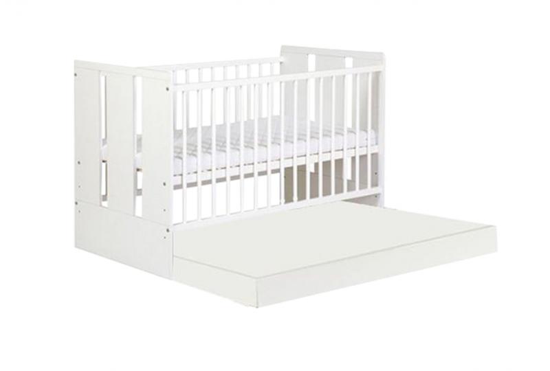 Pătuț copii din lemn cu sertar KLUPS Paula, alb, 120x60 cm