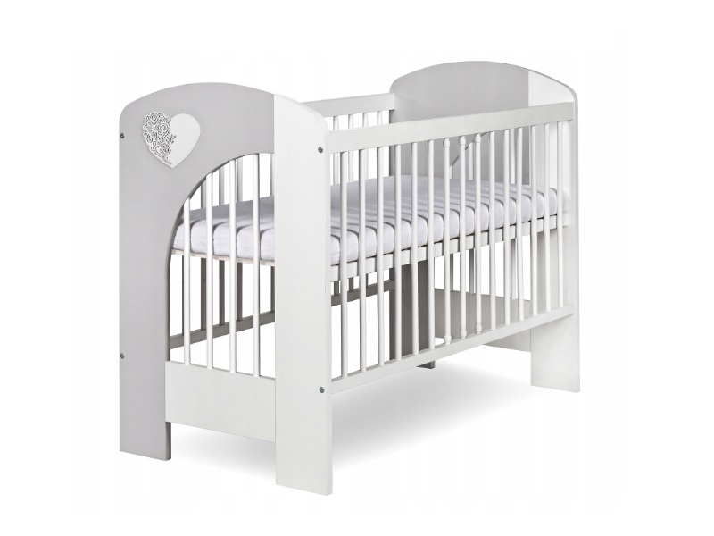 Pătuțul copii din lemn KLUPS NEL Heart alb-gri este o alegere practică și elegantă pentru camera bebelușului. Realizat din MDF și lemn de pin de calitate, acest pătuț pentru bebeluși 120x60 cm oferă stabilitate, siguranță și confort încă din primele luni de viață.