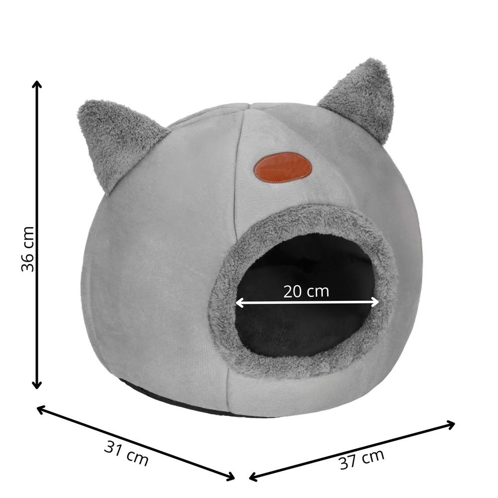 Patut pisici si caini, moale si pufos, antiderapant, perna detasabila, 37x31x36 cm, gri Household NewTrend