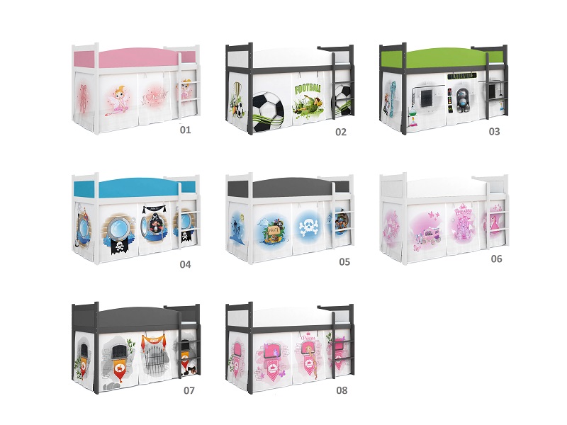 Un pat etajat deosebit, care permite folosirea spatiului de dedesubt pentru activitatea preferata a copiilor: joaca.
