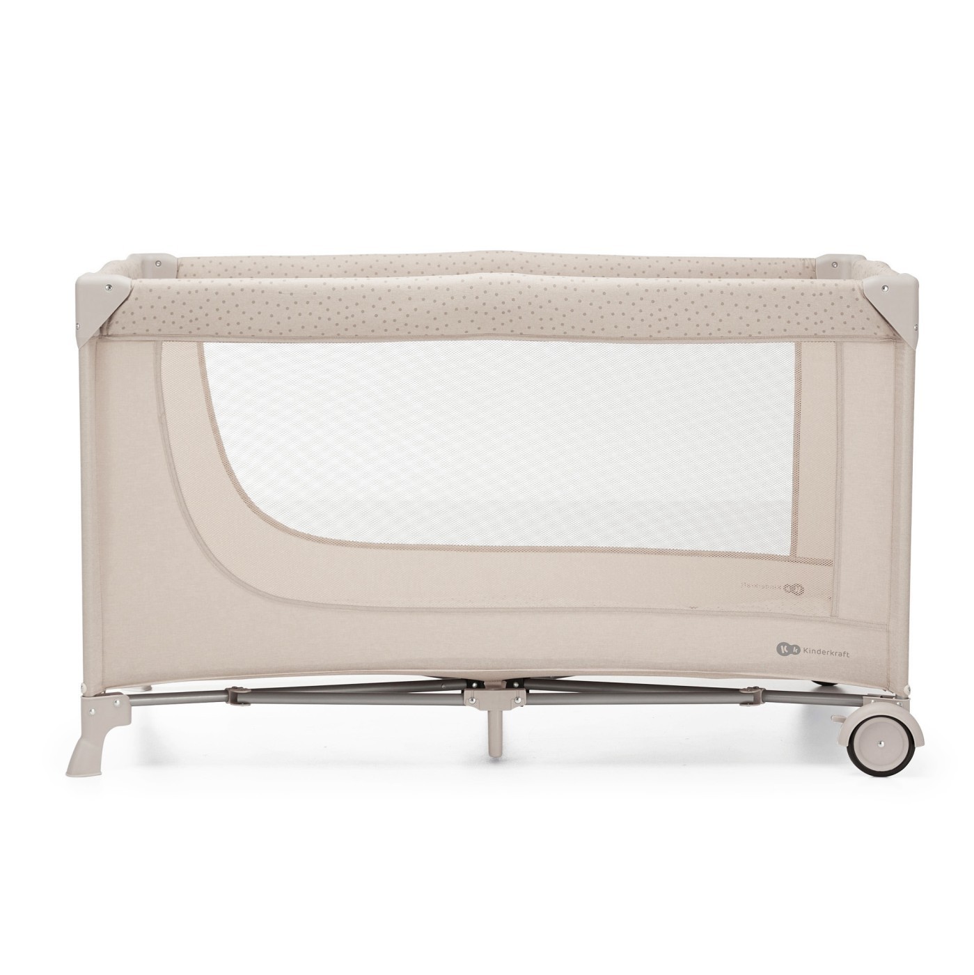 Patut de calatorie cu accesorii Kinderkraft JOY, 2 in 1, BEIGE Patutul de calatorie JOY 2 in 1 BEIGE este solutia ideala pentru toti parintii, care calatoresc des. Este usor de pliat pana la dimensiuni compacte, usor si rezistent, iar setul contine o geanta de transport confortabila. Este perfect si pentru utilizarea zilnica si ideal pentru odihna si somn. Acest patut este un adevarat &bdquocentru de operatiuni&rdquo cu numeroase facilitati si accesorii. Este echipat cu un sistem rapid de pliere si desfacere, precum si dubla protectie impotriva auto-plierii. Avantaje Siguranta Rama de otel foarte puternica, care asigura stabilitatea patutului. Patutul este dotat cu dubla protectie impotriva auto-plierii (de ex. atunci cand copilul sare sau se invarte). Cele 3 laturi ale patutului sunt realizate din plasa, care asigura circulatia adecvata a aerului dar si observarea discreta a copilului. Patutul JOY 2 in 1 BEIGE este fabricat in conformitate cu Standardul European EN 716. Confort Intrarea laterala ii permite copilului sa se urce si sa coboare singur din patut. JOY 2 in 1 BEIGE este dotat cu un sistem rapid si simplu de pliere si desfacere. Patutul vine impreuna cu o podea moale cu suprafata de 118x63 cm. Podeaua poate fi montata pe 2 niveluri. Produsul este foarte usor de pastrat curat. Functionalitate Patutul JOY 2 in 1 BEIGE este usor si de aceea foarte simplu de mutat. În plus, este dotat cu doua roti ce pot fi blocate. Are dimensiuni reduse dupa pliere 77x26,5x26,5 cm. Accesorii suplimentare Carusel cu sunet, luminite si 3 jucarii de plus, care ii permit celui mic sa isi antreneze atentia, concentrarea si sa isi intinda mainile. Cosuri pentru scutece, ce permit parintilor organizarea spatiului din camera. Suprafata de infasat pentru copii de pana la 12 luni, sarcina maxima 11 kg Fabricatie Materiale plastic, otel, poliester 200D Dimensiuni 129 x 73 x 76,5 (cm) Dimensiunile saltelei 117 x 60 cm Greutate 14,2 kg Dimensiuni/greutatea cutiei 77 x 26,5 x 26,5 (cm)/15 kg