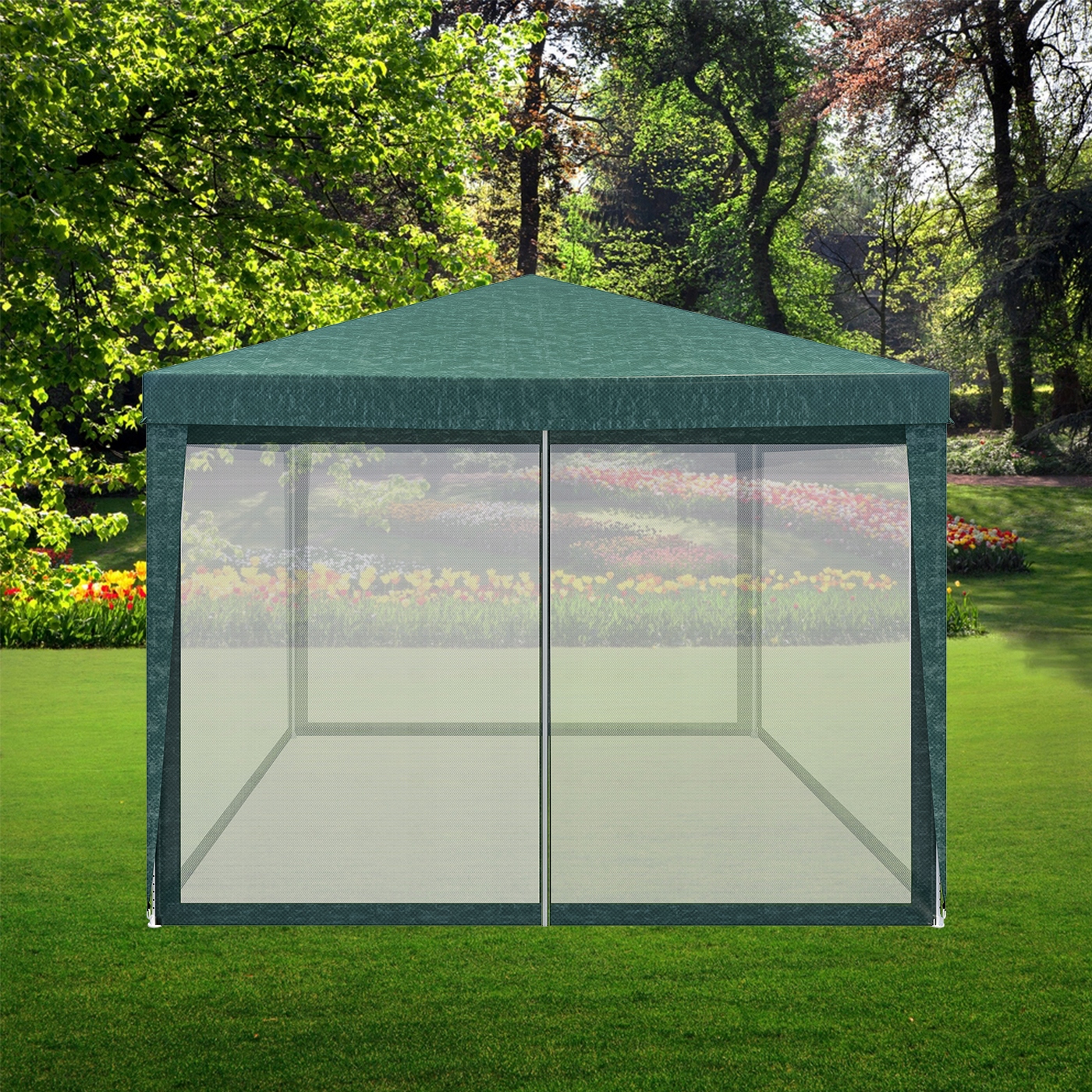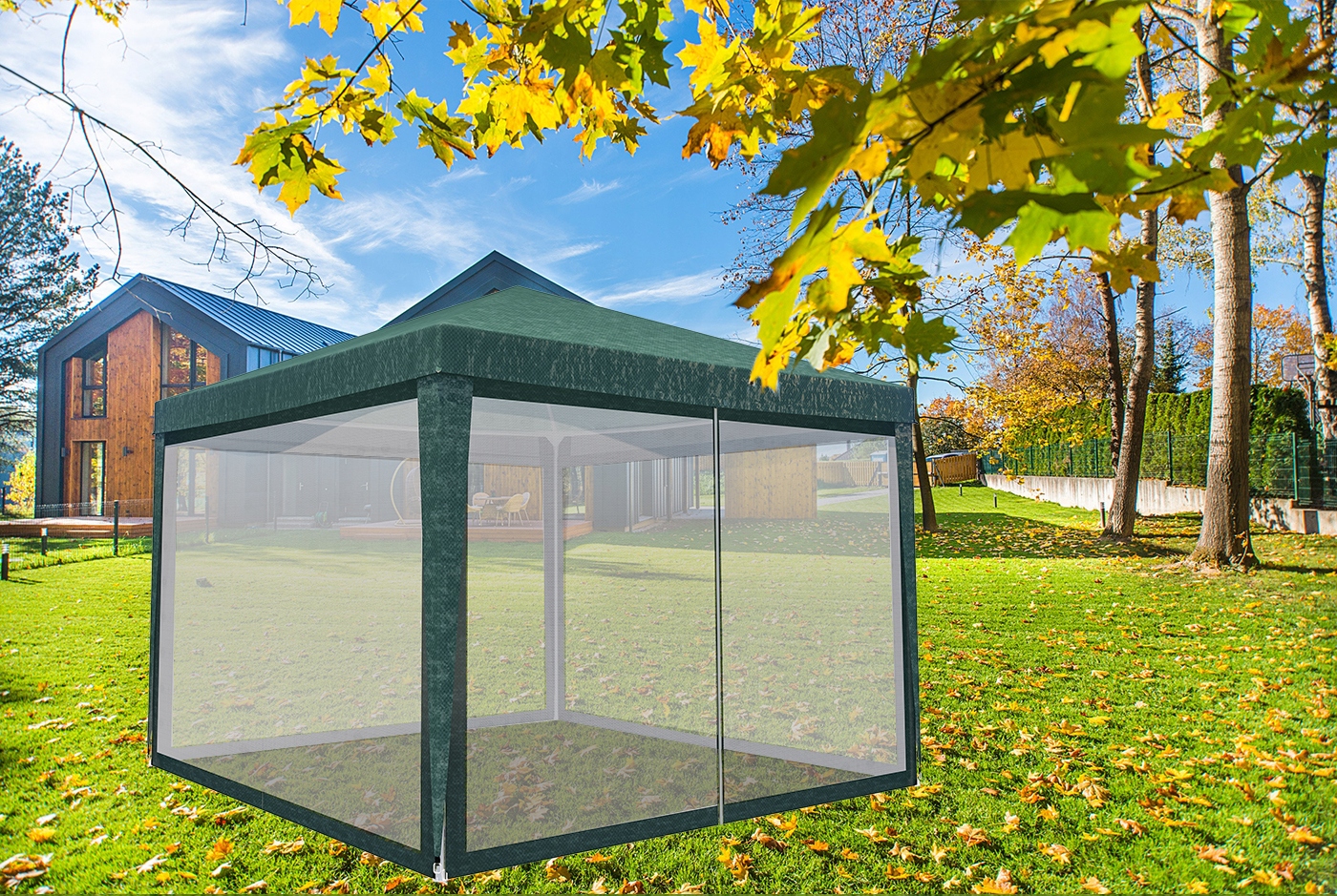 Pavilion de grădină 3x3 m cu plasă anti-insecte și fermoar, verde
