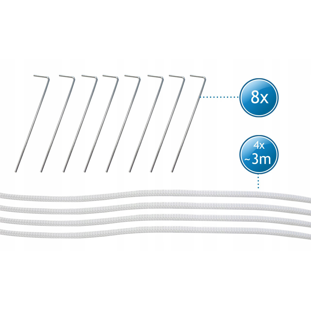 - Accesorii incluse: cadru complet, sfori și cuie pentru fixare
