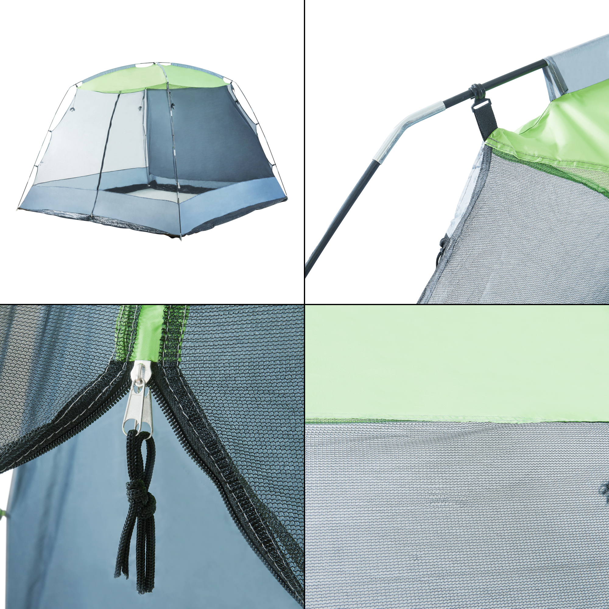 Pavilionul de grădină cu plasă antiinsecte este alegerea ideală pentru momentele petrecute în aer liber, fie că organizezi o petrecere în grădină, pleci la camping sau mergi la festival. Designul său practic și aspectul modern în nuanțe de gri și verde deschis se integrează ușor în orice decor exterior.