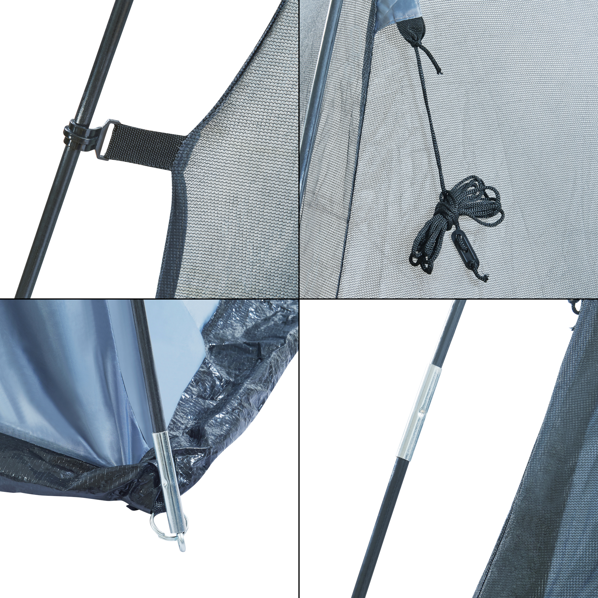 Acest pavilion cu plasă este potrivit pentru relaxare în curte, mese în aer liber, ieșiri la iarbă verde, vacanțe cu cortul sau evenimente temporare în exterior. Intrarea generoasă și spațiul interior de 305 x 305 cm oferă libertate de mișcare și confort pentru mai multe persoane.