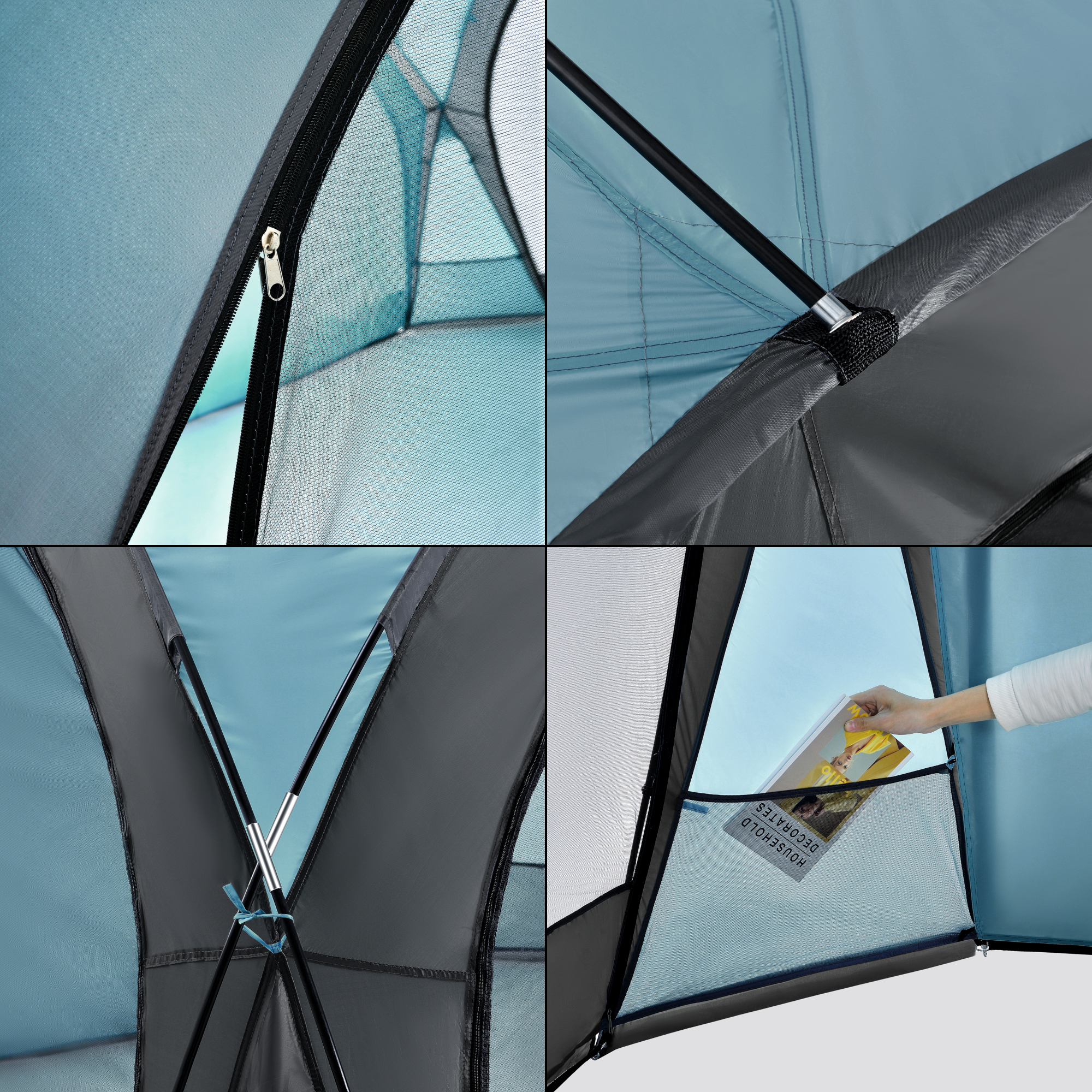 Poate fi folosit ca cort pavilion pentru grădină, adăpost pentru zona de relaxare, spațiu umbros pentru mese în aer liber sau pavilion practic pentru escapade la camping. Datorită construcției ușoare și accesoriilor incluse, este simplu de transportat și instalat acolo unde ai nevoie.