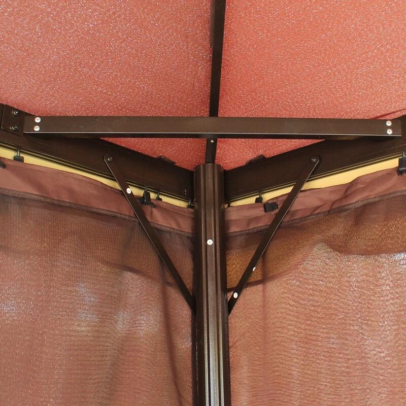 Pavilion/foisor pentru gradina/terasa, cadru aluminiu, cu plasa pentru insecte, cafeniu, 3.90x2.90x2.80 m