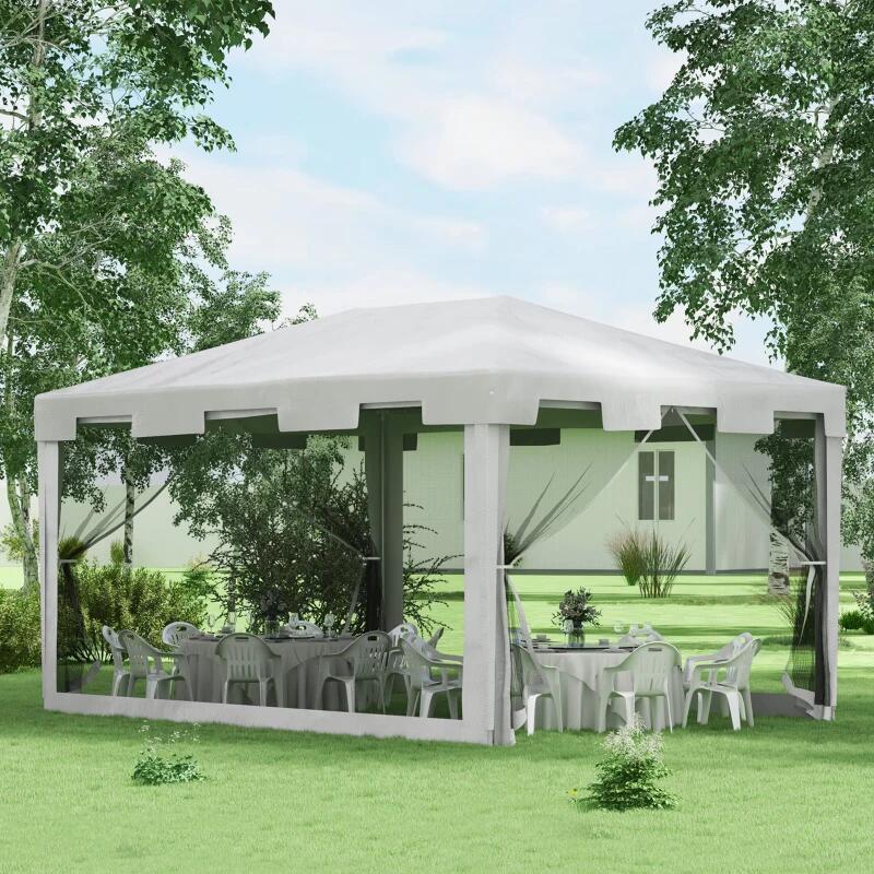 Pavilion/foisor pentru gradina/terasa, cadru metalic, cu plasa de tantari, alb si negru, 3.95x2.95x2.55 m