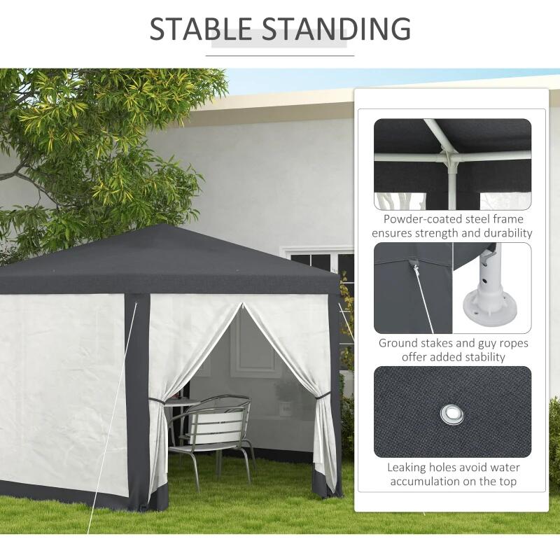 Pavilion/foisor pentru gradina/terasa, cadru metalic, cu plasa de tantari, gri inchis, 3.94x3.94x2.5 m GartenVIP DiyLine