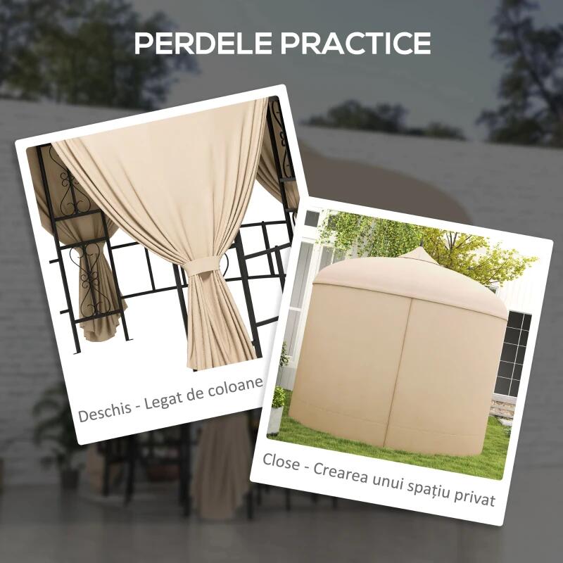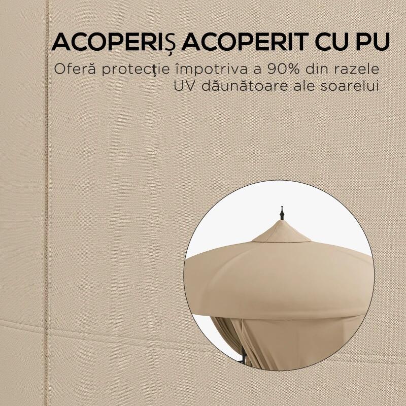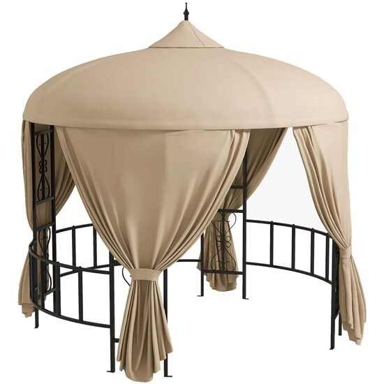 Pavilion/foisor pentru gradina/terasa, rotund, stil gazebo, cadru metalic, cu perdele, bej, 3x2.85 m GartenVIP DiyLine