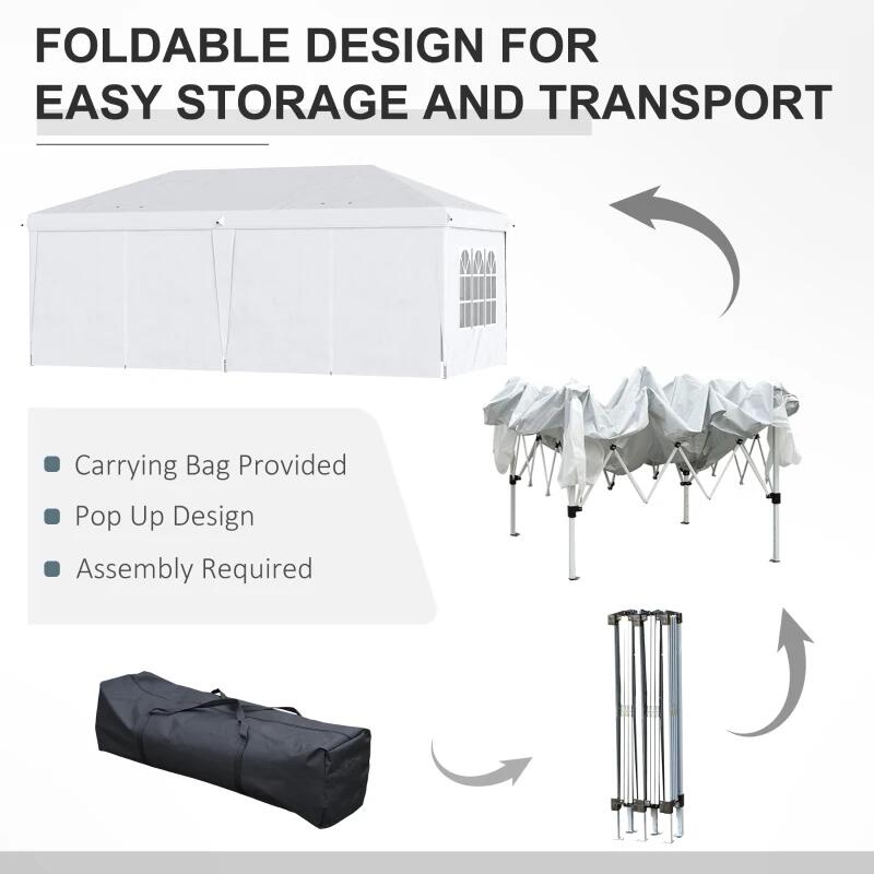 Pavilion pentru gradina/comercial, cadru metalic, material Oxford, 6 pereti, pliabil, alb, 5.85x2.95x2.70 m