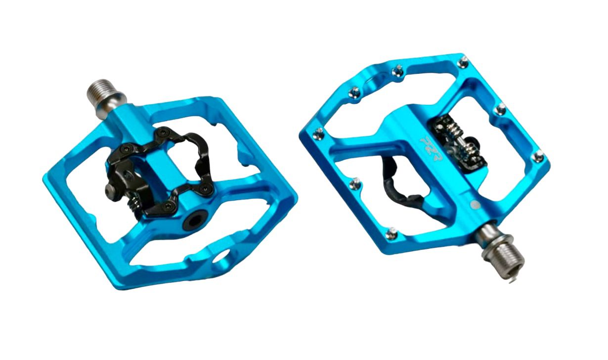 2 in 1 - combina pedale de platforma MTB si pedale SPD (set de tachete compatibil Shimano inclus). Avand dimensiunea corpului (100*100 mm) si forma optimizata.