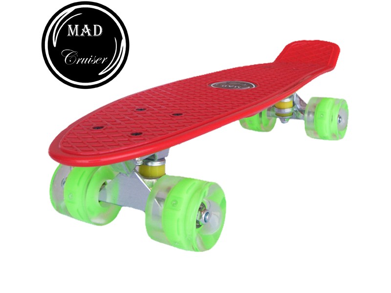 Penny board Mad Cruiser cu roti LED ABEC 7-rosu FitLine Training