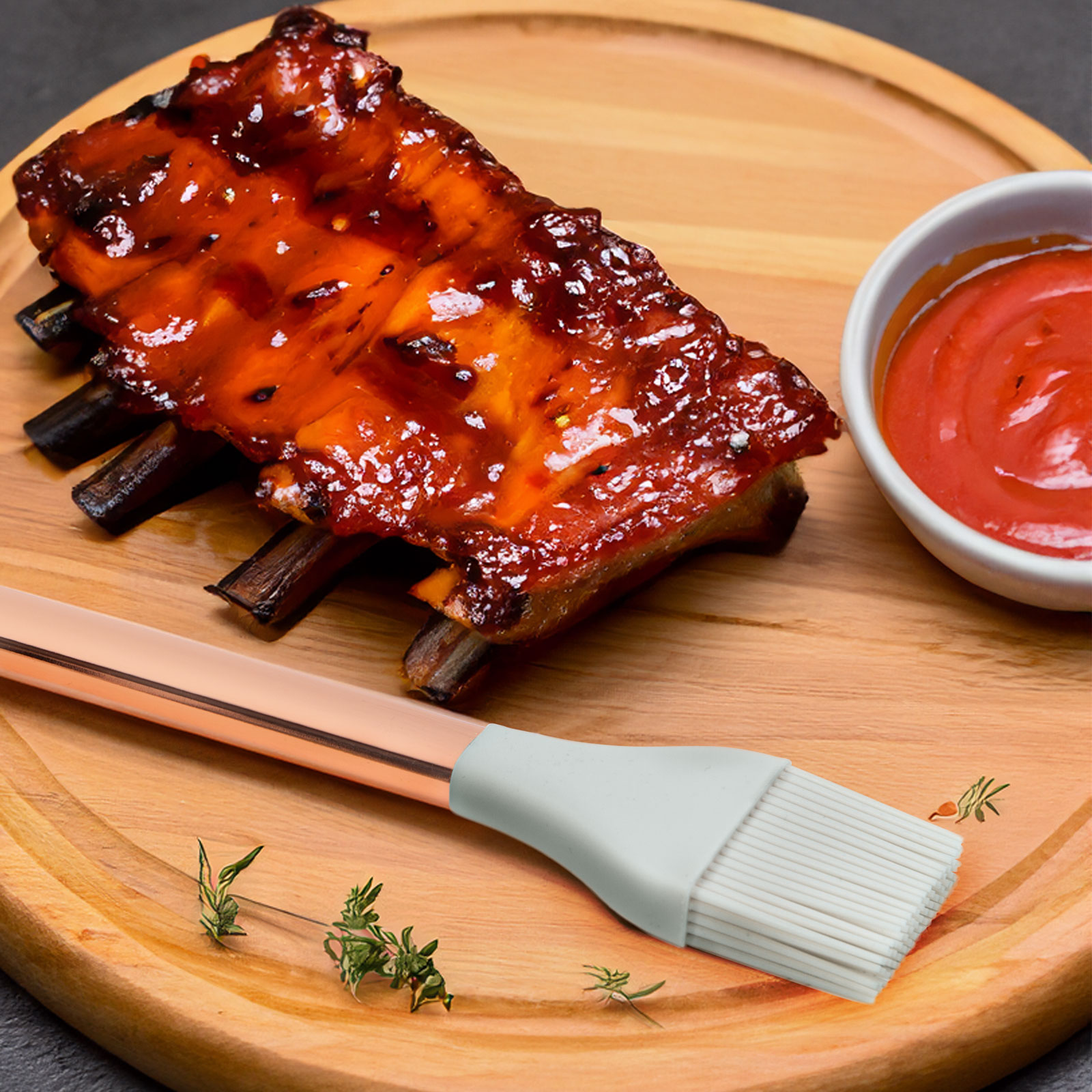 Această pensulă din silicon de bucătărie vă face activitățile din bucătărie și mai eficiente și mai plăcute. Mânerul ușor și confortabil din oțel inoxidabil se echilibrează perfect în mână, permițând mișcări precise și netede. Capul din silicon este moale, dar durabil, ceea ce îl face o alegere ideală pentru întinderea blatului prăjiturii. Această pensulă din silicon de bucătărie nu este doar funcțională, ci și elegantă. Designul modern și materialul ușor de curățat o fac alegerea ideală pentru a vă completa setul de unelte de bucătărie.