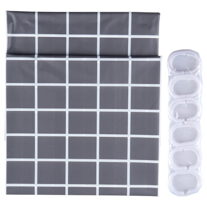 Perdea de duș impermeabilă gri 180x180 cm, cu 12 cârlige, model carouri
