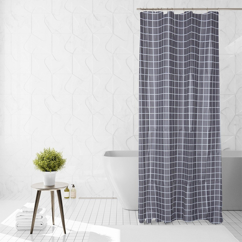 Transformă baia într-un spațiu mai curat și mai ordonat cu această perdea de duș impermeabilă de 180x180 cm, în nuanță gri cu model în carouri. Este ideală pentru a reduce stropii de apă, a oferi intimitate și a completa un decor modern, fără bătăi de cap la montaj.