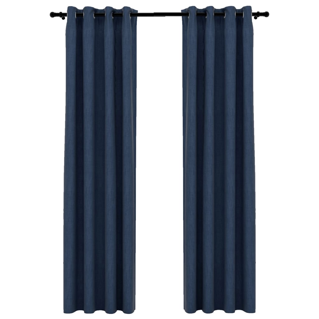 Perdele opace aspect pânză cu ocheți 2 buc albastru 140x245 cm GartenMobel Dekor