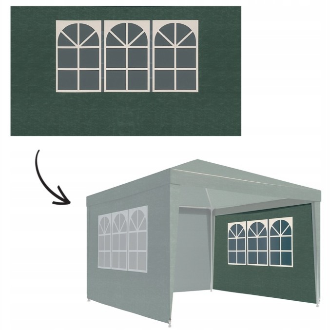 Perete lateral pentru pavilion de gradina 3x2 m, cu fereastra, velcro, verde