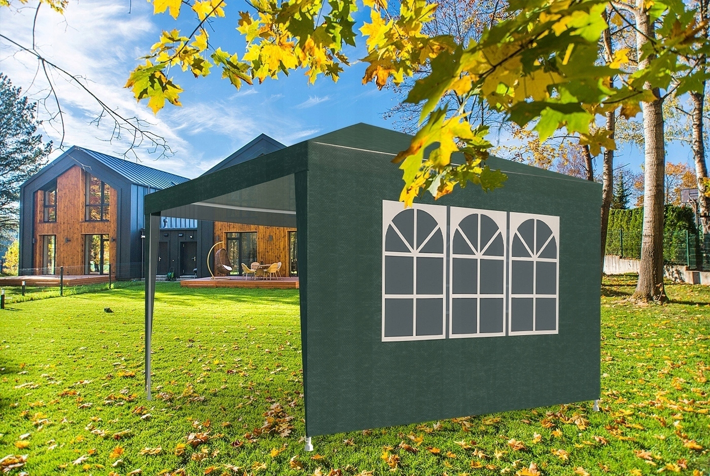 Completeaza rapid spatiul exterior cu acest perete lateral pentru pavilion, conceput pentru protectie eficienta si un aspect placut. Fabricat din material PE impermeabil, acest accesoriu ajuta la protejarea impotriva vantului, ploii usoare si razelor solare, fiind potrivit pentru petreceri, mese in aer liber, targuri sau utilizare in gradina. Fereastra integrata permite patrunderea luminii naturale si contribuie la un ambient mai aerisit si mai confortabil.