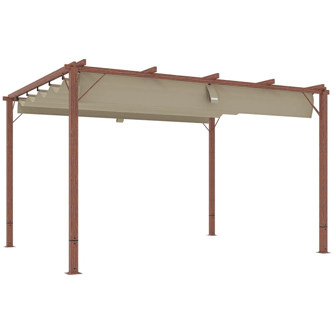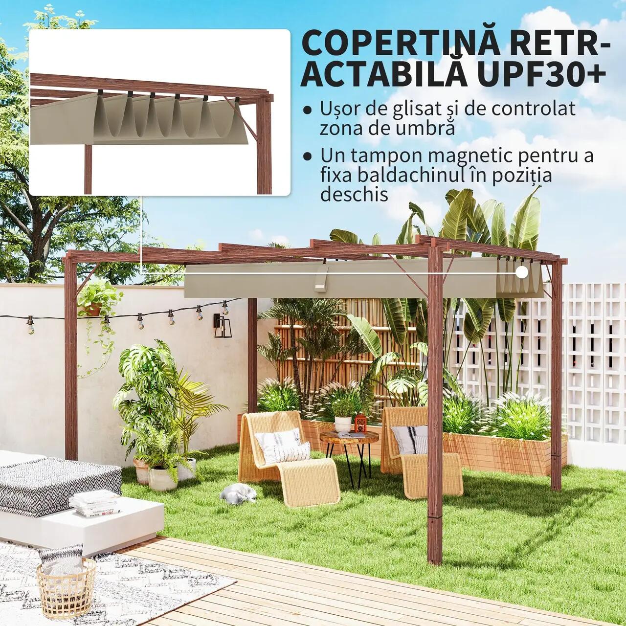 Pergola pentru gradina/terasa, retractabila, cadru aluminiu cu efect lemn, bej, 3.82x3x2.32 m