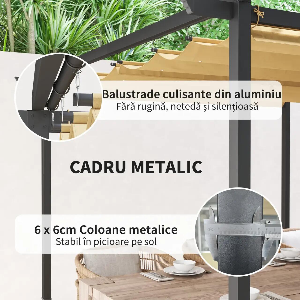 Specificatii Pergola gradina/terasa, retractabila, cadru metalic, bej,