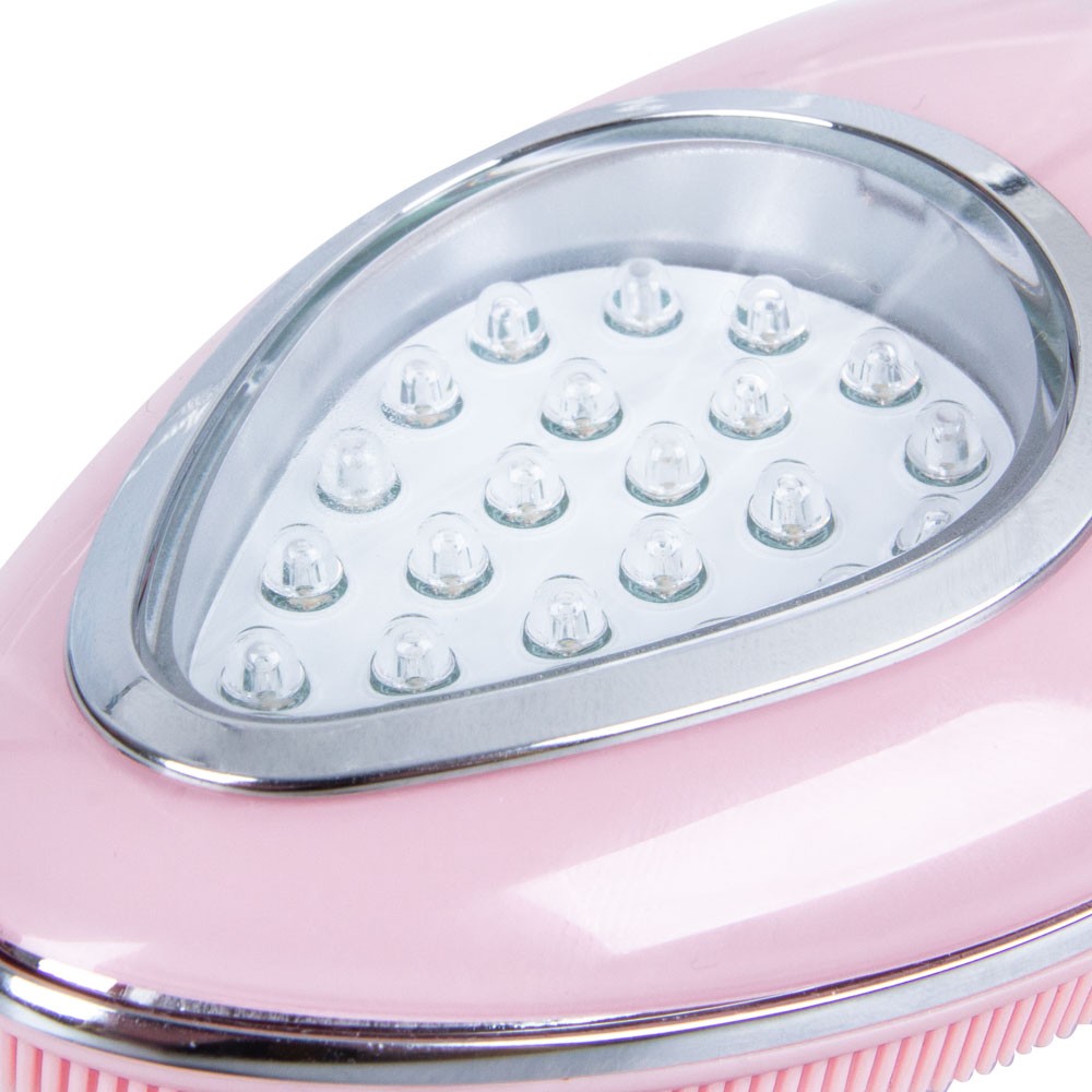 Pe partea din spate a dispozitivului se afla un mic panou cu diode LED, pe care puteti selecta una dintre cele trei culori de lumina - rosu, galben si albastru. Lumina este folosita in terapia cu fotoni, care este utilizata pe scara larga in saloanele de infrumusetare, deoarece este una dintre cele mai eficiente modalitati de a trata afectiunile cronice ale pielii, cum ar fi acneea, petele de pigmentare, ridurile sau pistruii. Terapia cu lumina LED este un tratament nedureros si neinvaziv pentru ingrijirea pielii, care utilizeaza diode emitatoare de lumina care trimit energie luminoasa de nivel scazut in profunzimea pielii, activand fotoreceptorii din celulele pielii pentru a va infrumuseta tenul.