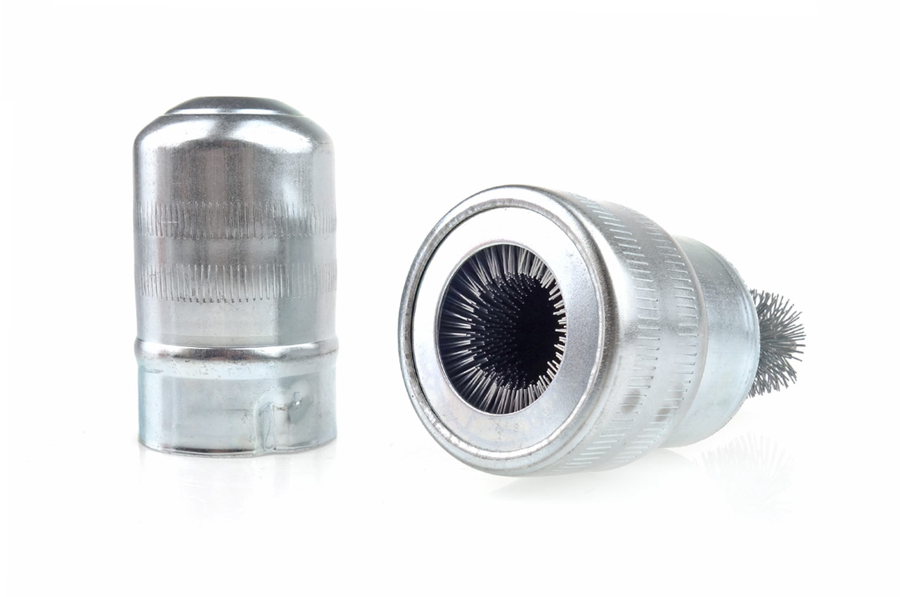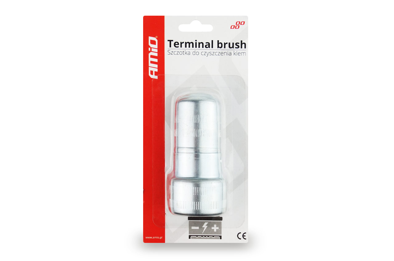 O perie metalica cu forma speciala va permite sa curatati atat bornele, cat si prizele/stalpii bateriei.