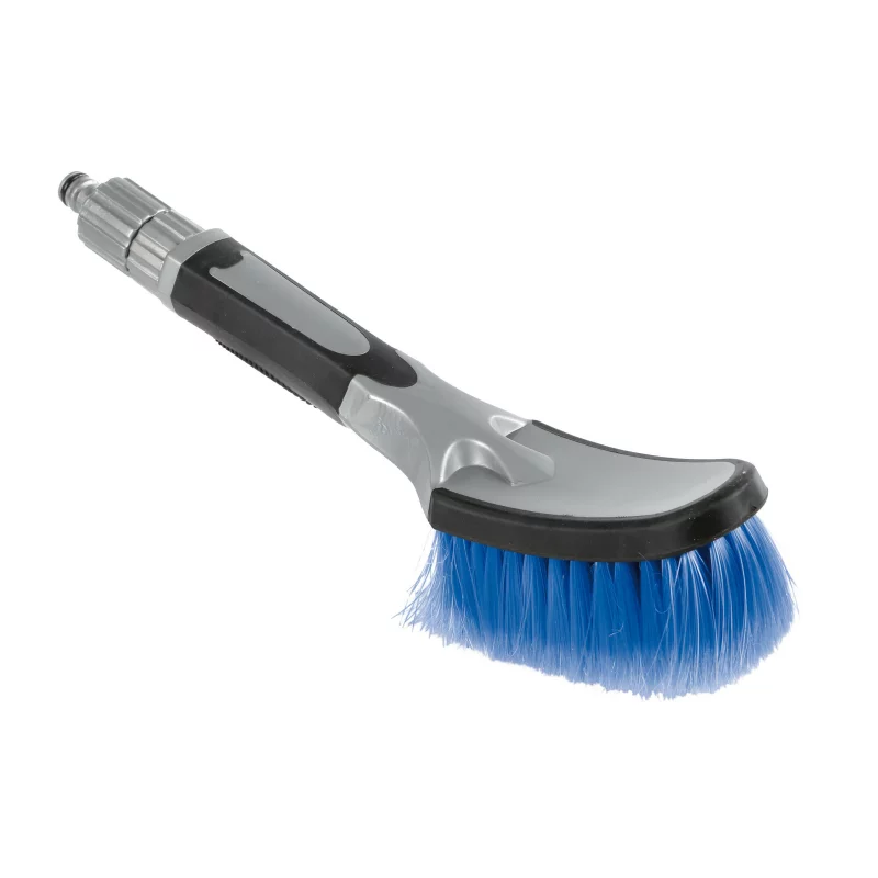 Utilizare: conectează peria la furtunul de apă prin conectorul rapid, pornește debitul și reglează jetul din mâner. Spală caroseria cu mișcări uniforme, insistând pe zonele cu murdărie persistentă. Perii moi contribuie la o curățare delicată și eficientă.
