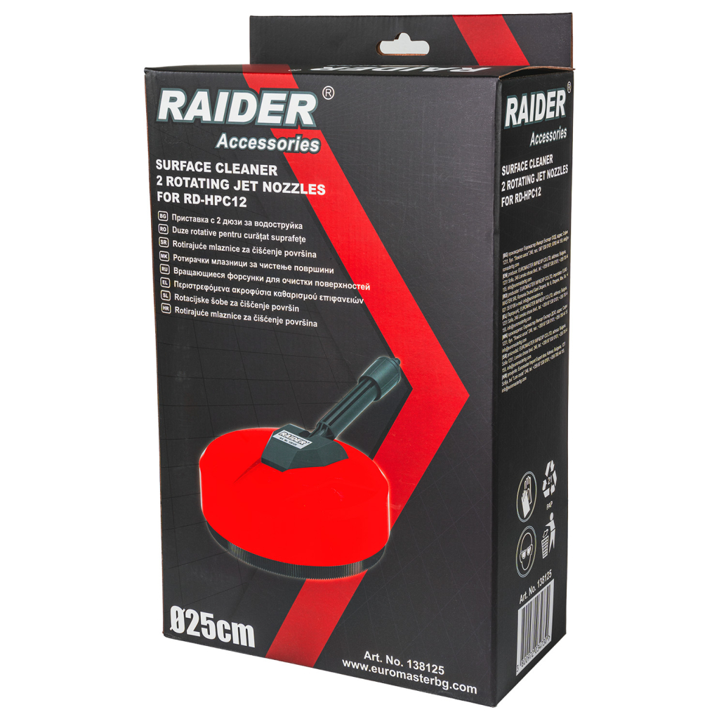 Peria pentru suprafețe cu două duze rotative este accesoriul ideal pentru curățarea eficientă a zonelor exterioare cu ajutorul aparatului compatibil RD-HPC12. Concepută pentru a oferi o spălare uniformă, această perie pentru aparat de spălat cu presiune ajută la îndepărtarea murdăriei de pe terase, alei, pavele sau alte suprafețe dure, cu mai puțini stropi și un control mai bun în utilizare.