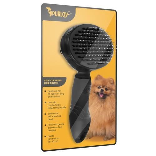 Perie, piepten, ingrijire caini si pisici, autocuratare, negru, 9.5x18 cm, Purlov