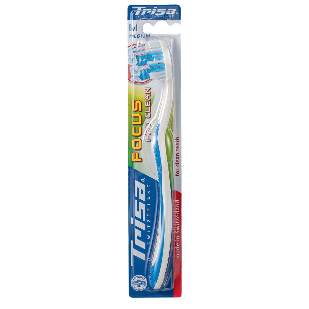 Periuța de dinți manuală Trisa Focus Pro Clean Medium este alegerea potrivită pentru o curățare eficientă a dinților în rutina zilnică de igienă orală. Dezvoltată și produsă în Elveția, această periuță de dinți cu peri medii este concepută pentru a îndepărta placa dentară și pentru a oferi un periaj confortabil, zi de zi.