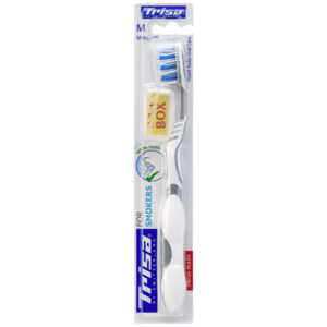 Periuta de dinti manuala Trisa For Smokers Medium este alegerea potrivita pentru persoanele care isi doresc o curatare eficienta si o ingrijire zilnica adaptata obiceiurilor de consum precum fumatul, cafeaua sau ceaiul. Fabricata in Elvetia, aceasta periuta de dinti pentru fumatori este conceputa pentru a ajuta la reducerea decolorarilor de suprafata si pentru a sustine o respiratie mai proaspata.