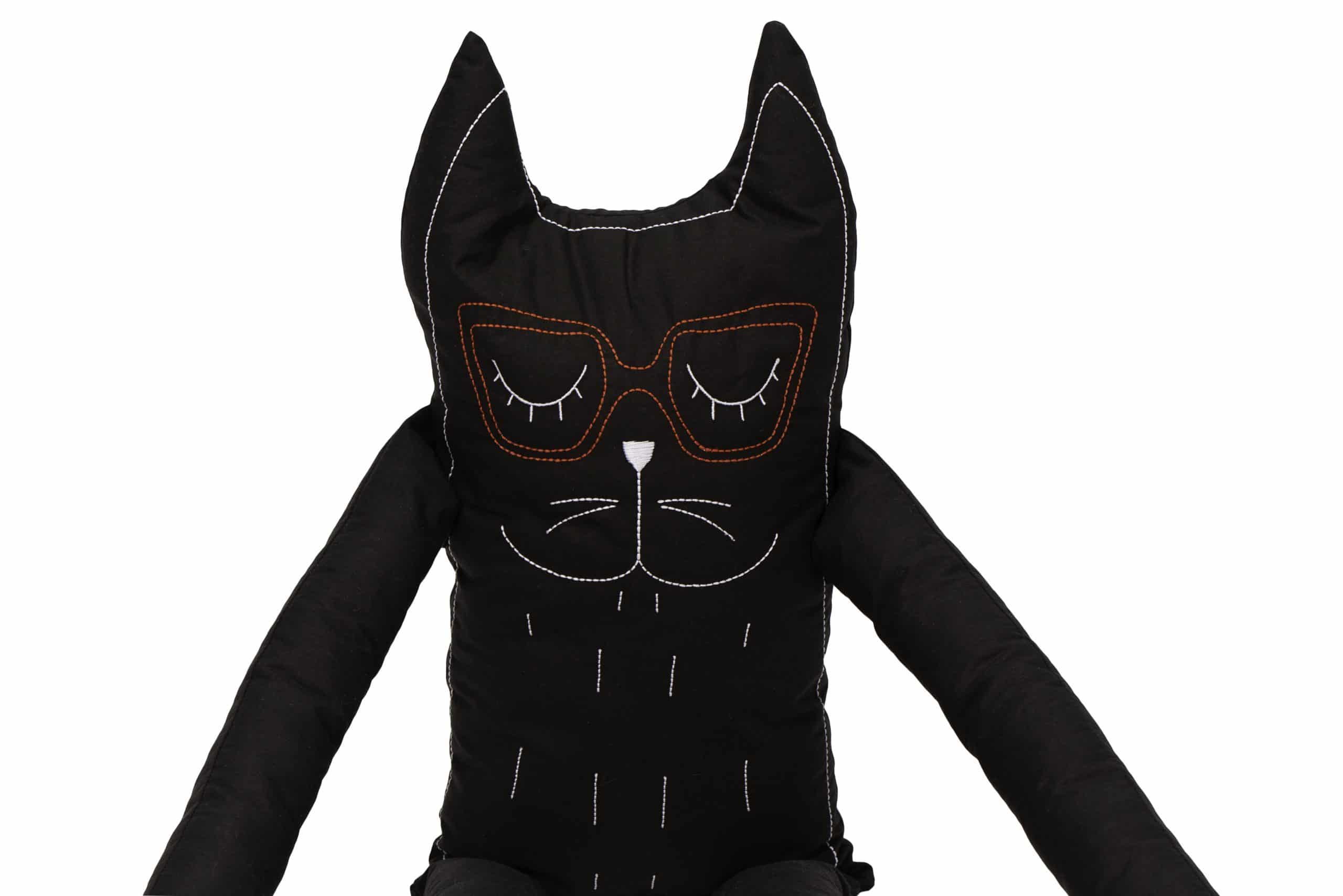 Perna decorativa in forma de pisica SomnArt, cu sare si bumbac, neagra